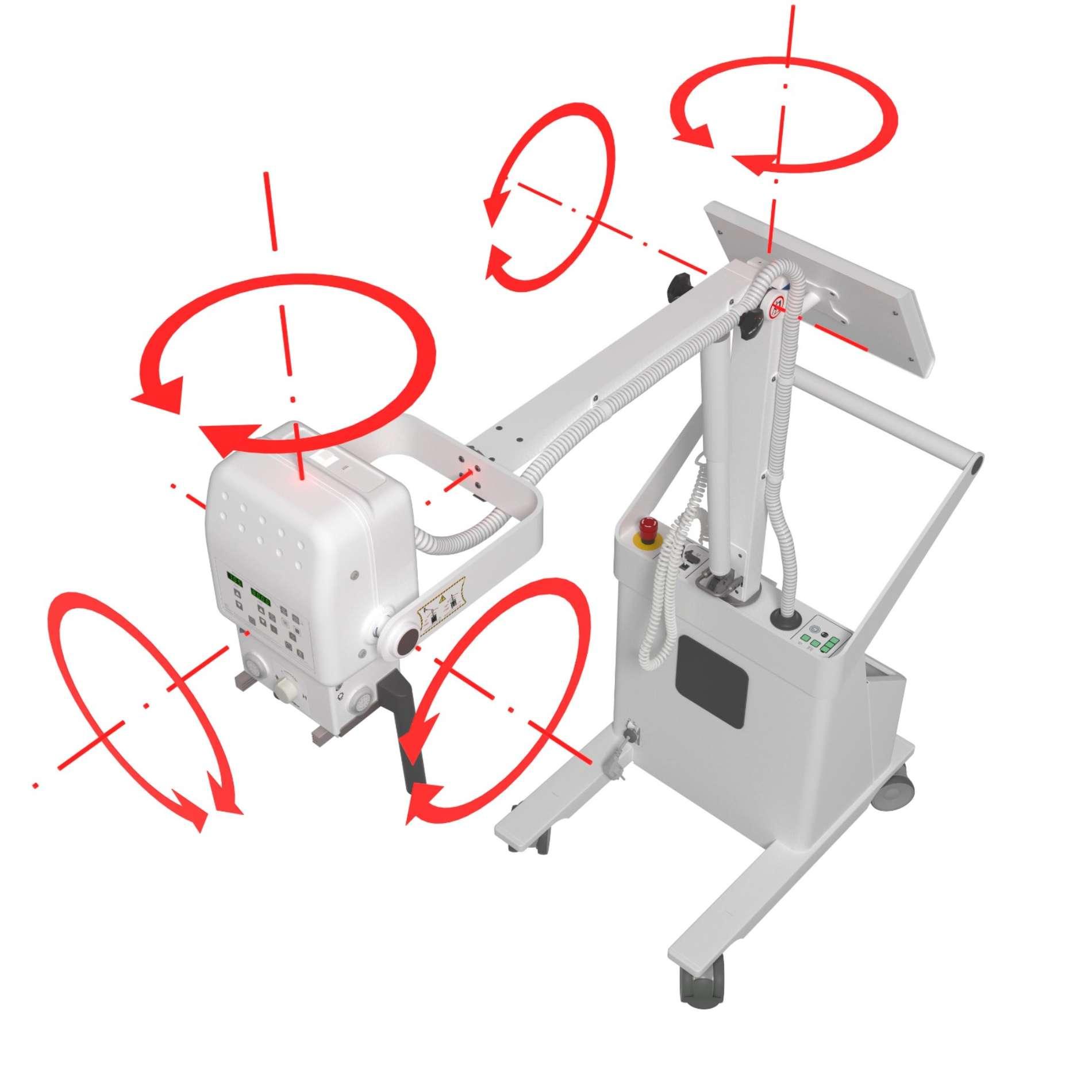 Çekim esnasında ideal açıyı elde etmek için kolunu açarak ve tüpü ve kolimatörü çevirerek mobil üniteyi konumlandırmanız yeterlidir.