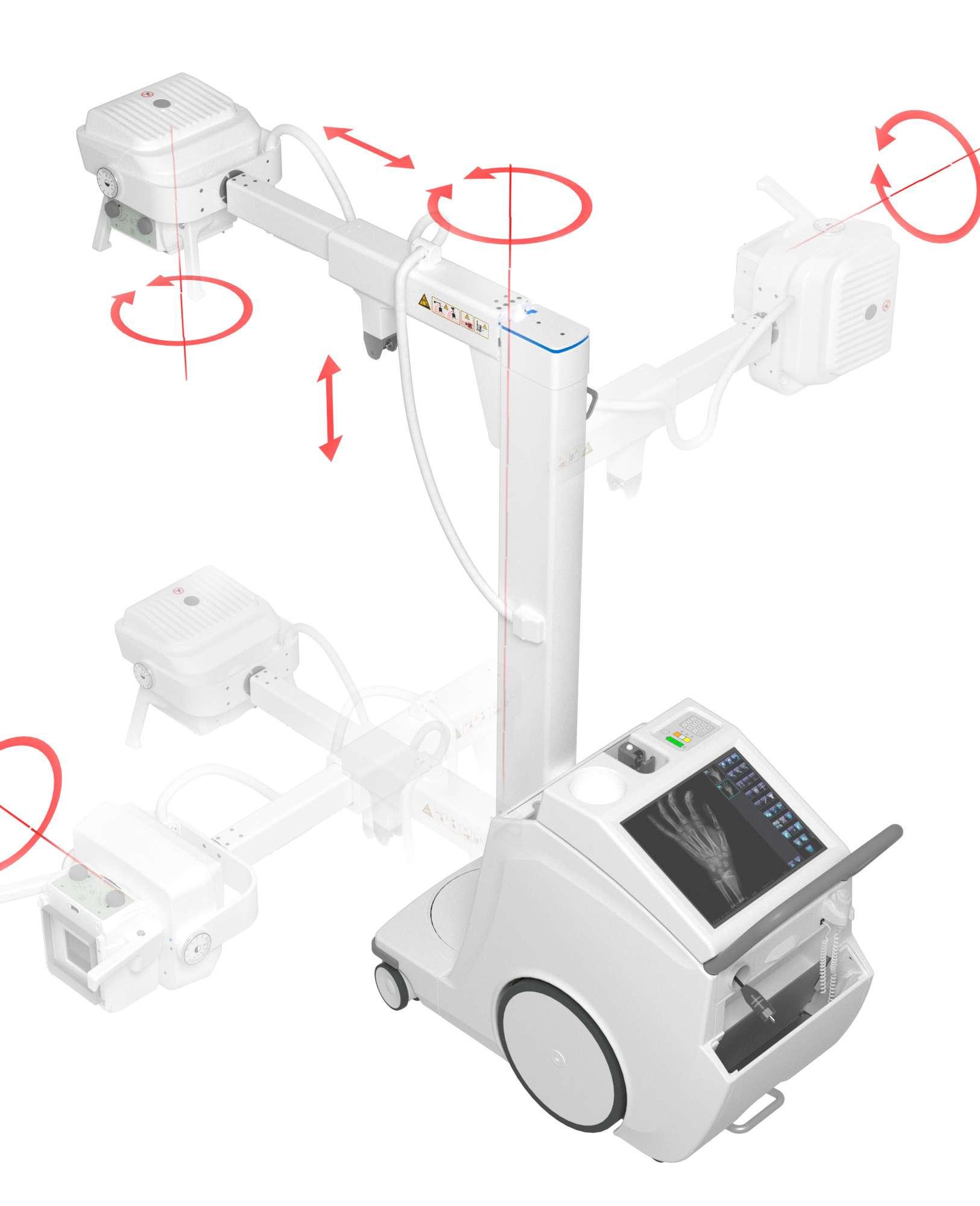 Teleskopik kol ve teleskopik kolon sayesinde tüm radyoloji ihtiyaçları için kolay pozisyonlandırma imkanı sağlar.